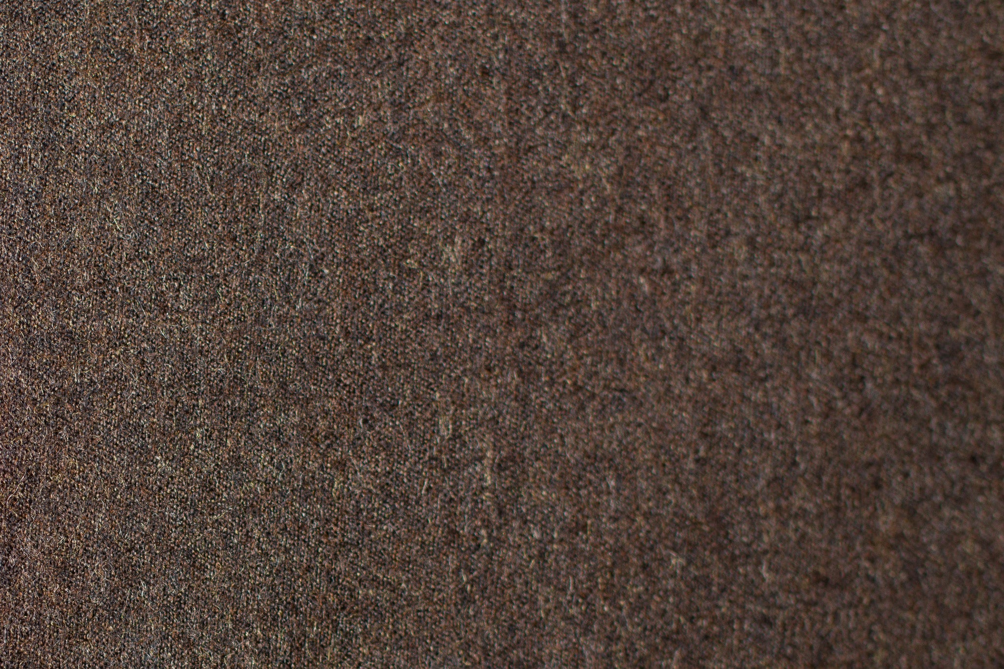 Coffee Brushed Wool Suiting, at 4.66 oz, has a soft, lightly brushed surface with a warm brown tone touched by gentle heathering. The finish feels exceptionally smooth in the hand, giving the fabric a comforting texture without losing the tidy appearance expected of suiting-weight wool.