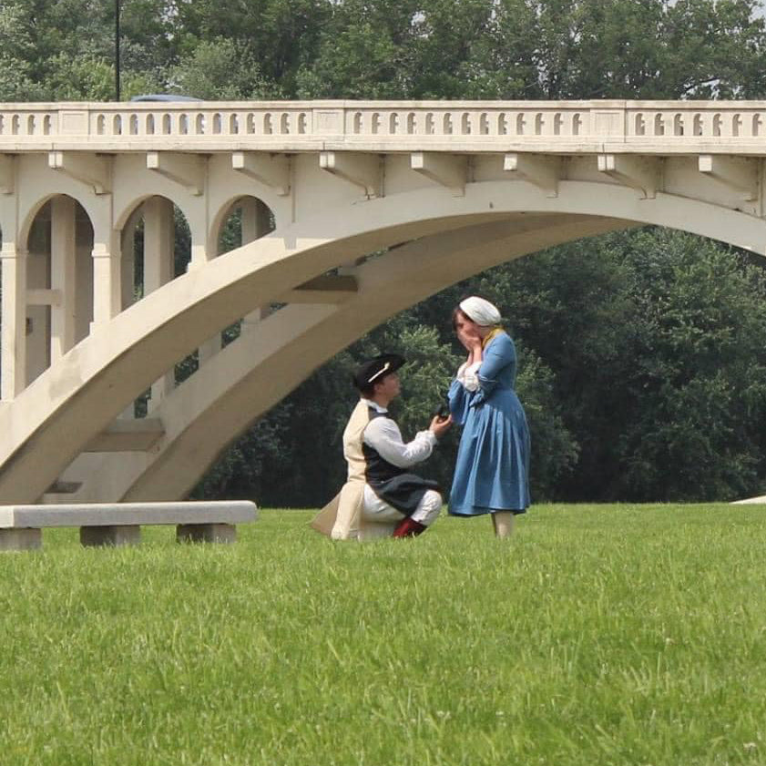 In late May of 2015, Casey proposed to Abbie on the banks of the Wabash at the Spirit of Vincennes Living History event in Vincennes, Indiana.