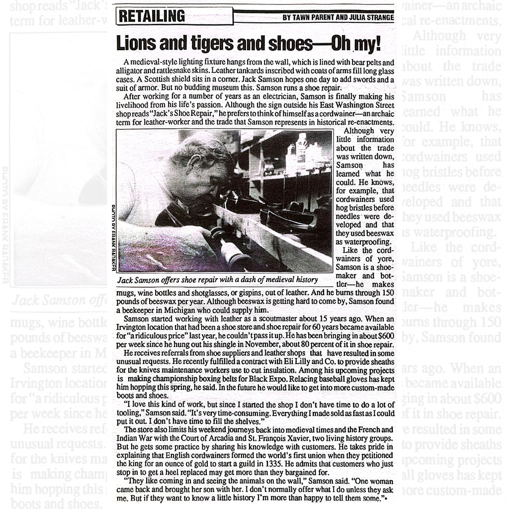 After many years of doing leatherwork inside his home on the East side of Indianapolis, Jack had the opportunity to move into the former Charlie's Shoes store when it came up for sale in 1986 in the 5600 block of E Washington St.